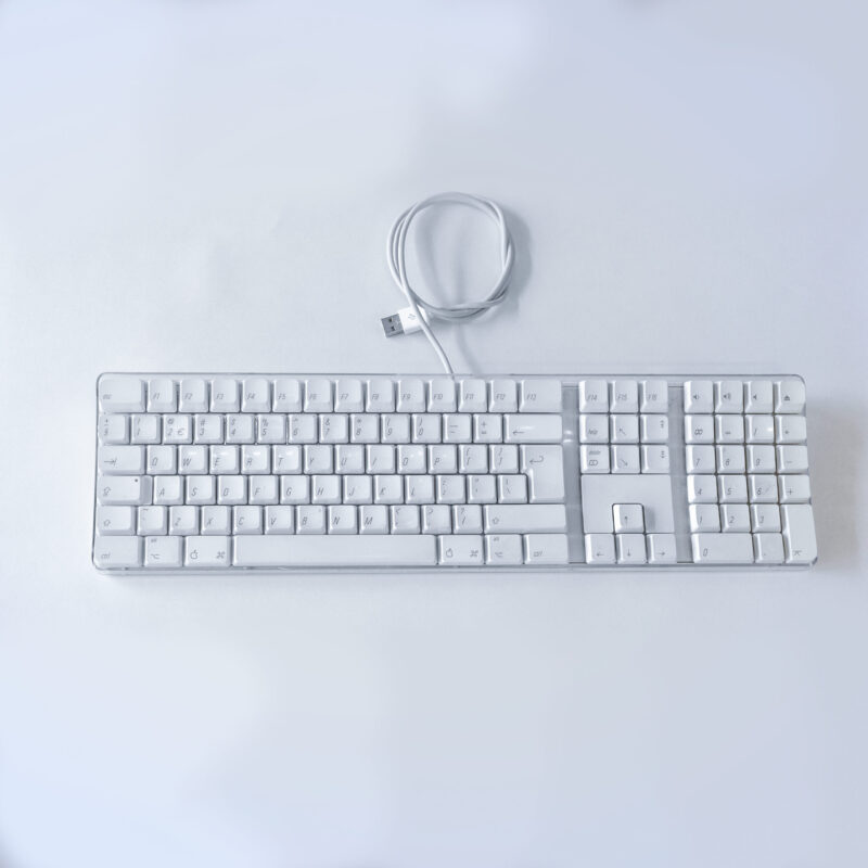 Vintage toetsenbord (dikke knoppen toetsenbord) uit periode 2003 – 2007. Dit toetsenbord mag dan wel gebruikt zijn, maar is helemaal refurbished tot een zo goed als nieuw toetsenbord.